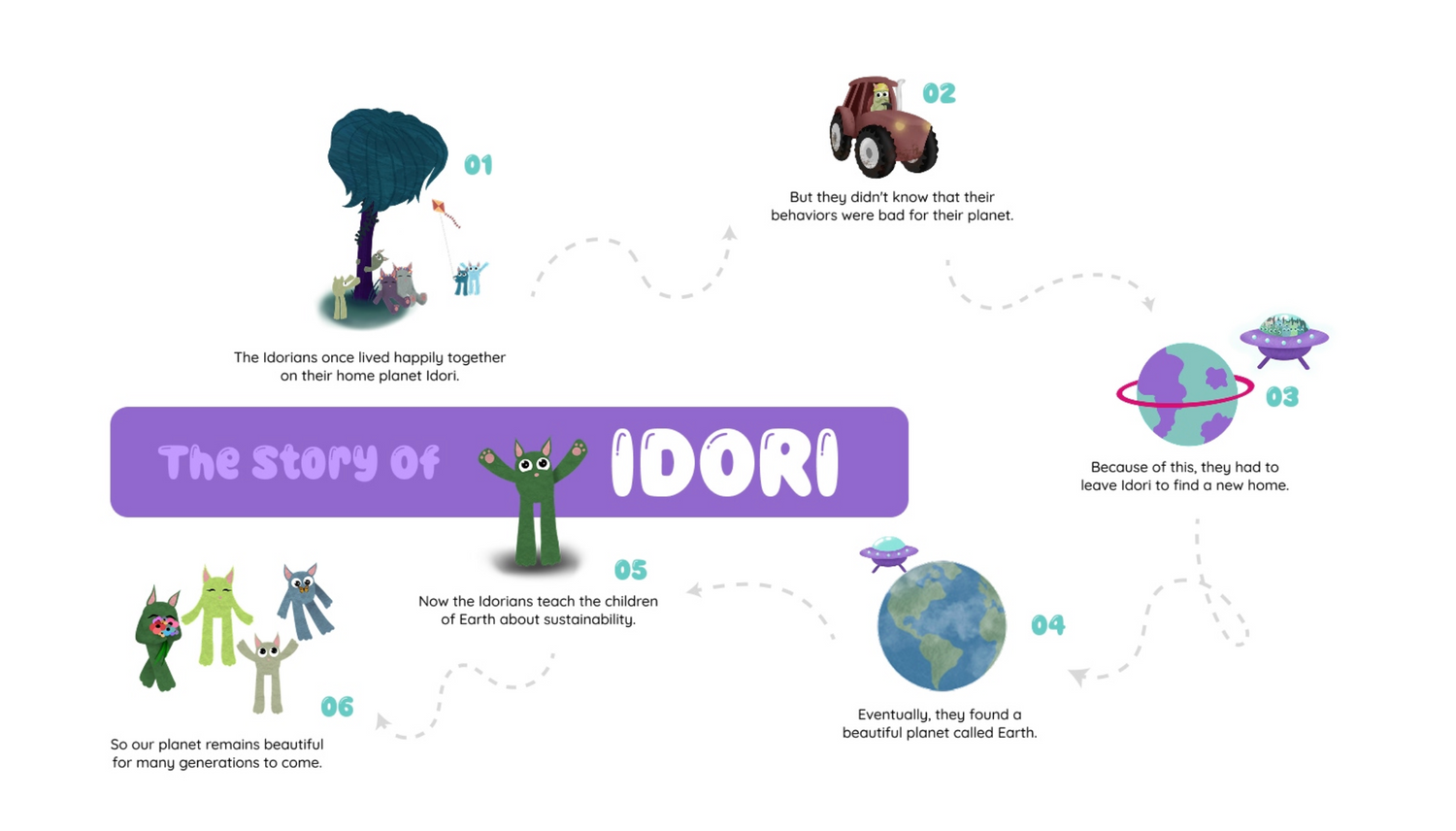 The Idorians are not just adorable, soft, huggable, and puppet-able, interactive friends, but they each tell their own unique story about a different aspect of the environment, while sharing a positive message about sustainable behavior along the way.